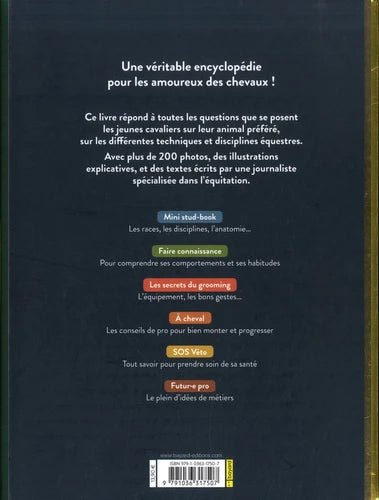 Si tu aimes les chevaux, ce livre est pour toi! Il propose une découverte détaillée du quotidien et du comportement de ton animal préféré, ainsi qu'une initiation facile aux grands principes de l'équitation.