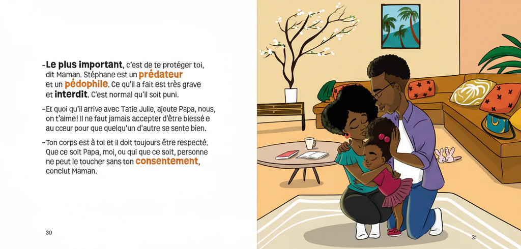 À travers Mon corps est à moi, les enfants découvrent qu’il existe des gestes interdits — même lorsqu’ils viennent de personnes proches — et qu’il est important d’écouter ce qu’ils ressentent.
