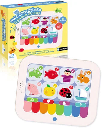 Cette tablette interactive propose 8 comptines incontournables, un petit piano coloré et plusieurs modes de jeux pour développer l’écoute, la mémoire, la motricité fine et la curiosité naturelle des tout-petits.