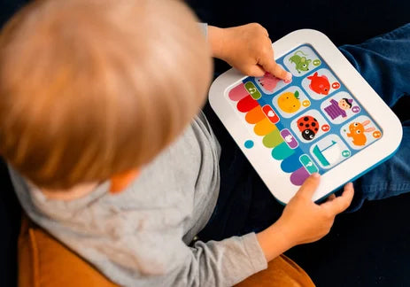 Avec Mes comptines à jouer et à chanter, les enfants de 1 à 3 ans explorent la musique en toute autonomie grâce à une tablette d’éveil sans écran, conçue pour stimuler leurs sens tout en s’amusant.