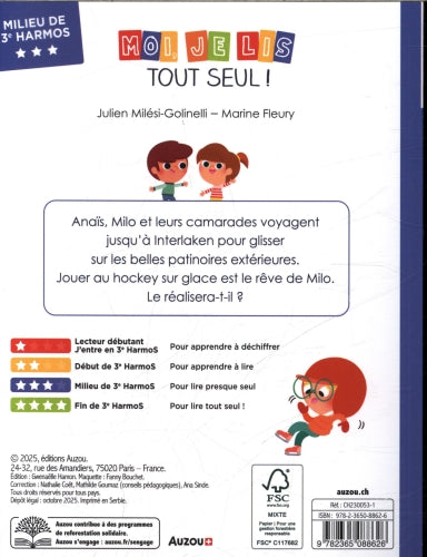 Anaïs, Milo et leurs camarades voyagent jusqu'à Interlaken, réputée pour ses six patinoires extérieures. Glisser est tellement chouette ! Mais Milo aimerait jouer au hockey sur glace. Son rêve se réalisera-t-il ?
