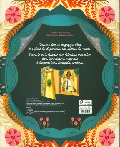 Votre jeune lecteur ou lectrice pourra explorer l’univers féerique de 15 princesses extraordinaires. Chaque histoire commence par l’ouverture de la porte de leur château — une porte finement découpée au laser, aussi délicate que de la dentelle — qui révèle leur royaume magique.