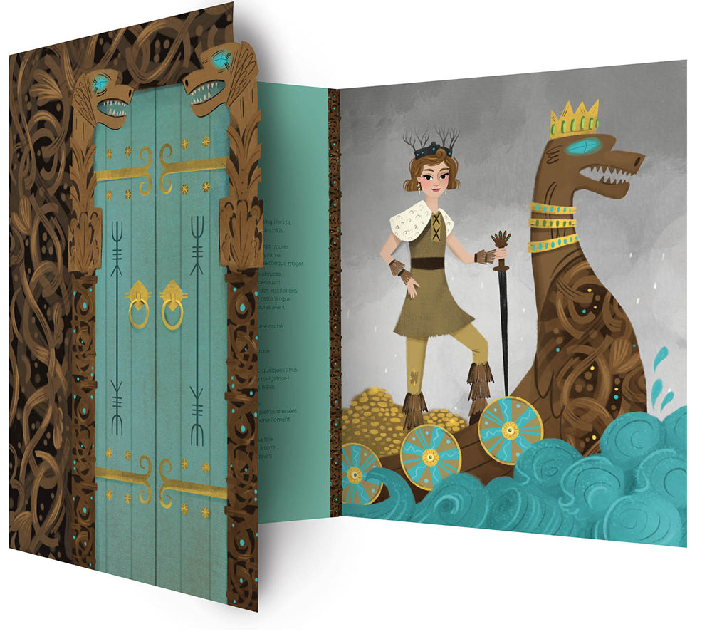 À droite, une superbe illustration présente chaque princesse, vêtue de mille couleurs, pour émerveiller les yeux des enfants et nourrir leur créativité.
